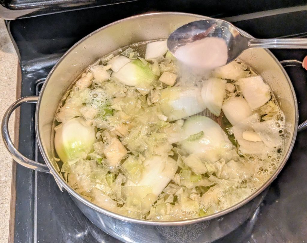 Vegetables: 2 onions (quartered), 2 celery stalks, 3-6 garlic cloves, and a handful of cabbage or other veggies like leeks or carrots for added depth.