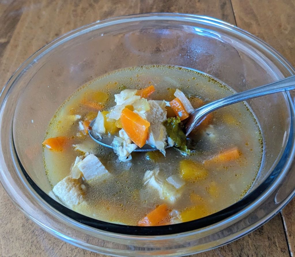 Dash out to the garden and rescue the final stragglers before frost claims them—stubborn kale, 🥬 runaway herbs, the lone carrot hiding under a leaf. Anything can go in this soup!