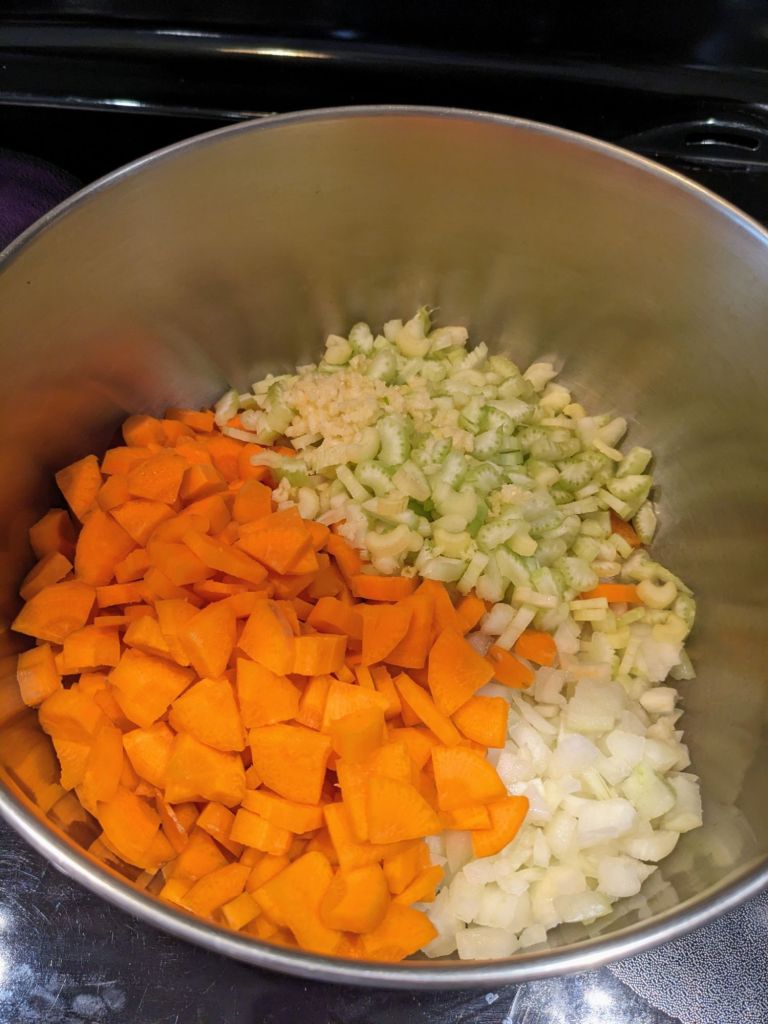 Heat a splash of oil in your stock pot over medium-high. Toss in the diced onions, garlic, celery, and carrots—stir for just 2–3 minutes until they smell amazing and start to soften.