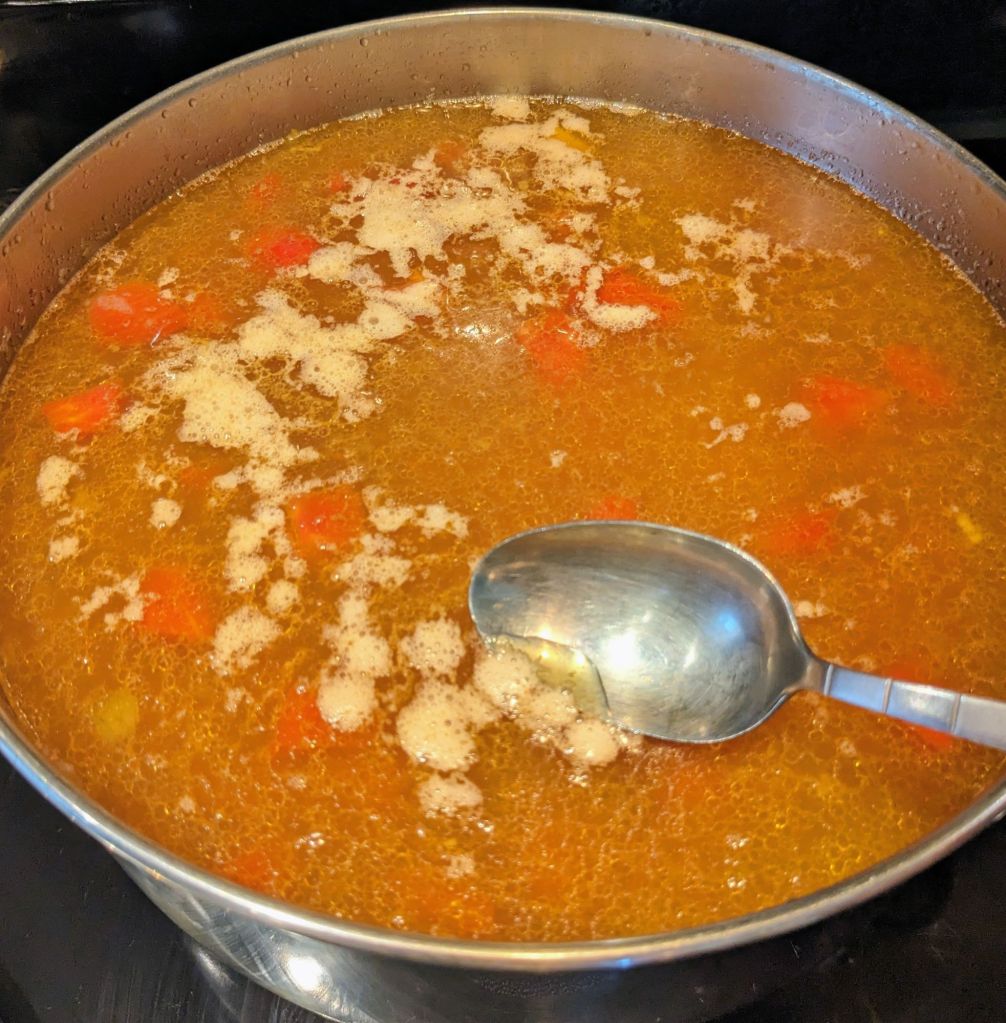 -Bring it to a gentle simmer for about 5-10 minutes. If any foam or excess fat rises to the top, skim it off—it makes the soup taste cleaner.