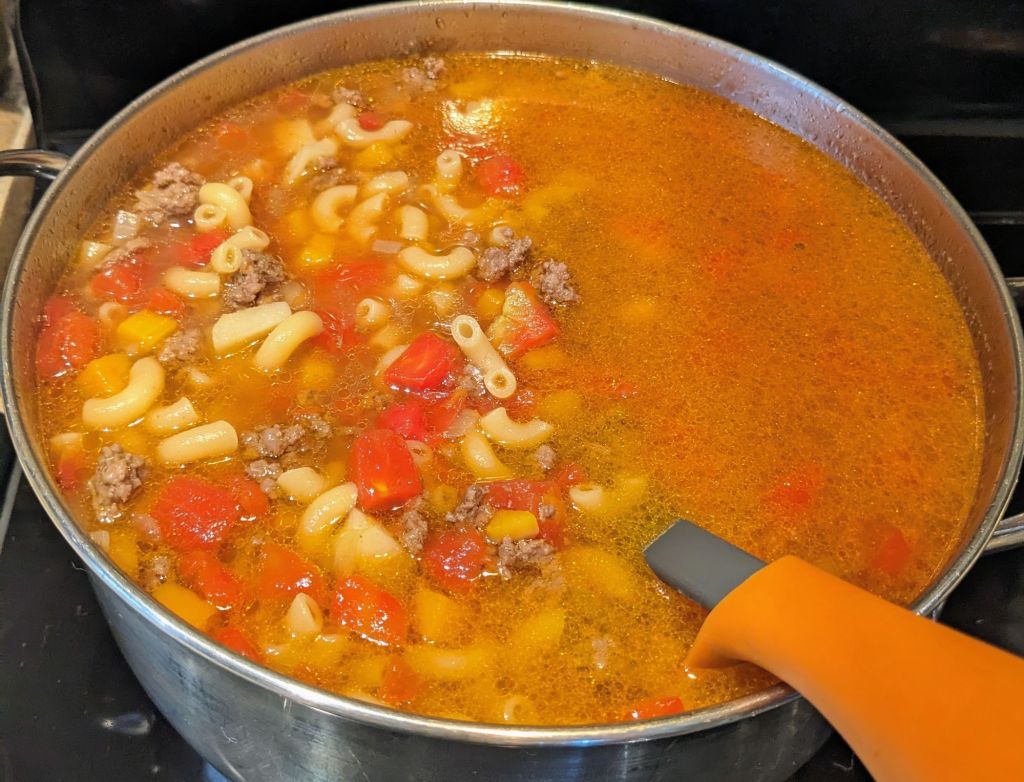 -Finally, stir in the cooked macaroni (cook it al dente if you prefer, —it soaks up the flavors and thickens the soup perfectly as it cooks and expands.